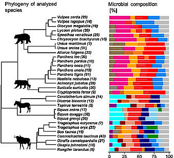 Unser Ziel war es, festzustellen, ob im Mikrobiom von Kotproben von Gnus (Connochaetes taurinus) und Tigern (Panthera tigris) art- und individuenspezifische Cluster-Muster zu beobachten sind.