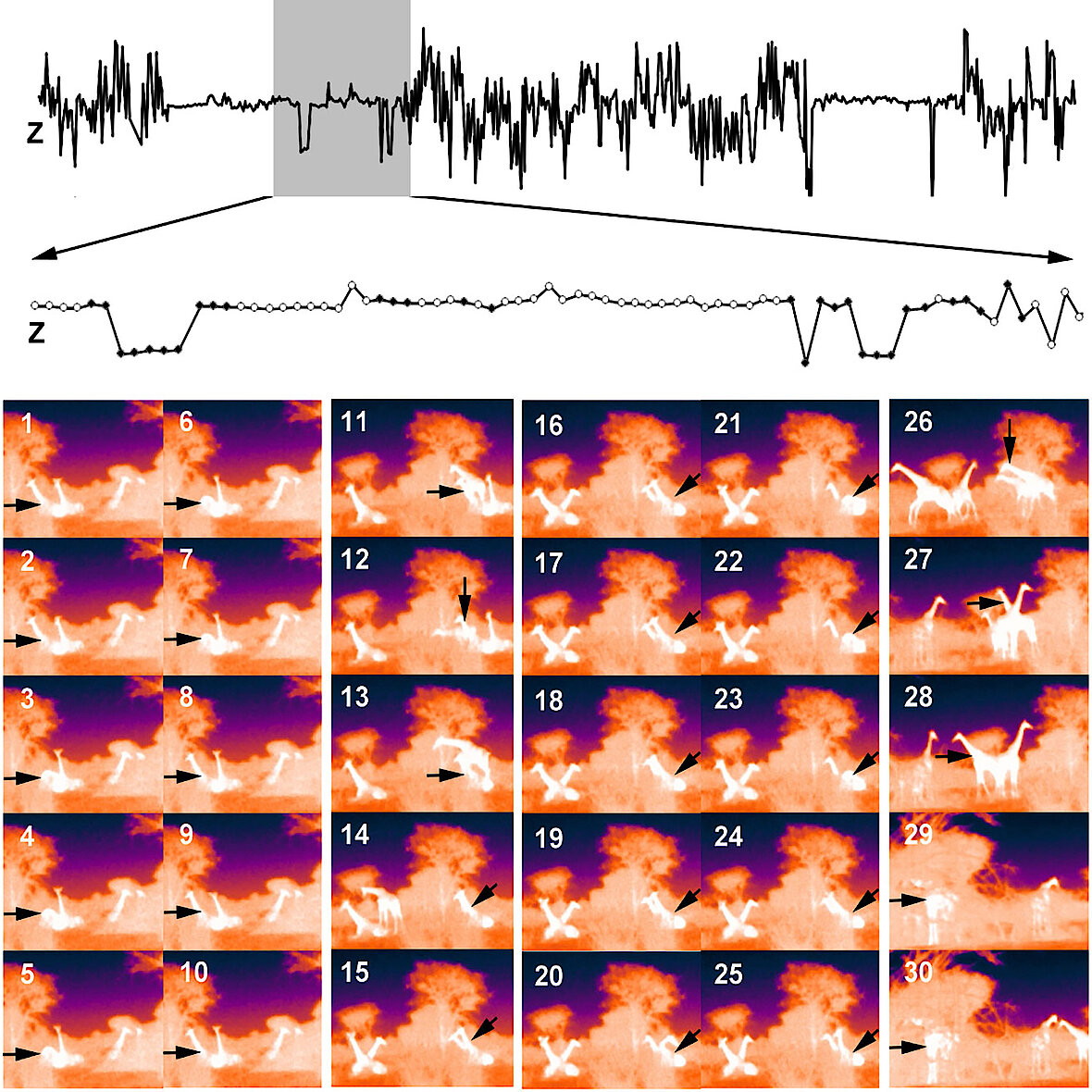 Ziel dieser Studie war es, die Inaktivität und den REM-Schlaf von Giraffen in Namibia zu messen und ihre nächtliche Verhaltensrhythmik zu erforschen. Drei Giraffen wurden dazu mit einem Beschleunigungsmesser GPS-Gerät besendert.