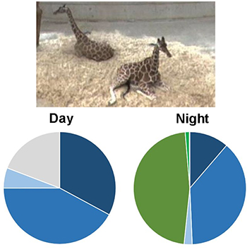 In der vorliegenden Studie wurden die nächtlichen Rhythmen von 192 Individuen von 18 Huftierarten aus 20 europäischen Zoos im Hinblick auf die Verhaltenspositionen Stehen, Kopf hochlegen und Kopf runterlegen (die typische REM-Schlafposition) untersucht.