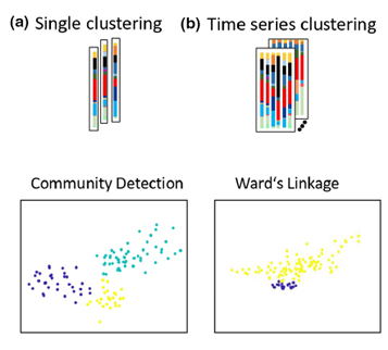 Um solche Cluster zu identifizieren, haben wir zwei verschiedene hierarchische Clustering-Algorithmen angewandt (community detection algorithm und Ward's linkage).