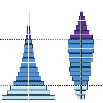 Here we present an algorithmic classification of population data into ‘pyramids’ of different shapes that can be associated with typical demographic characteristics.